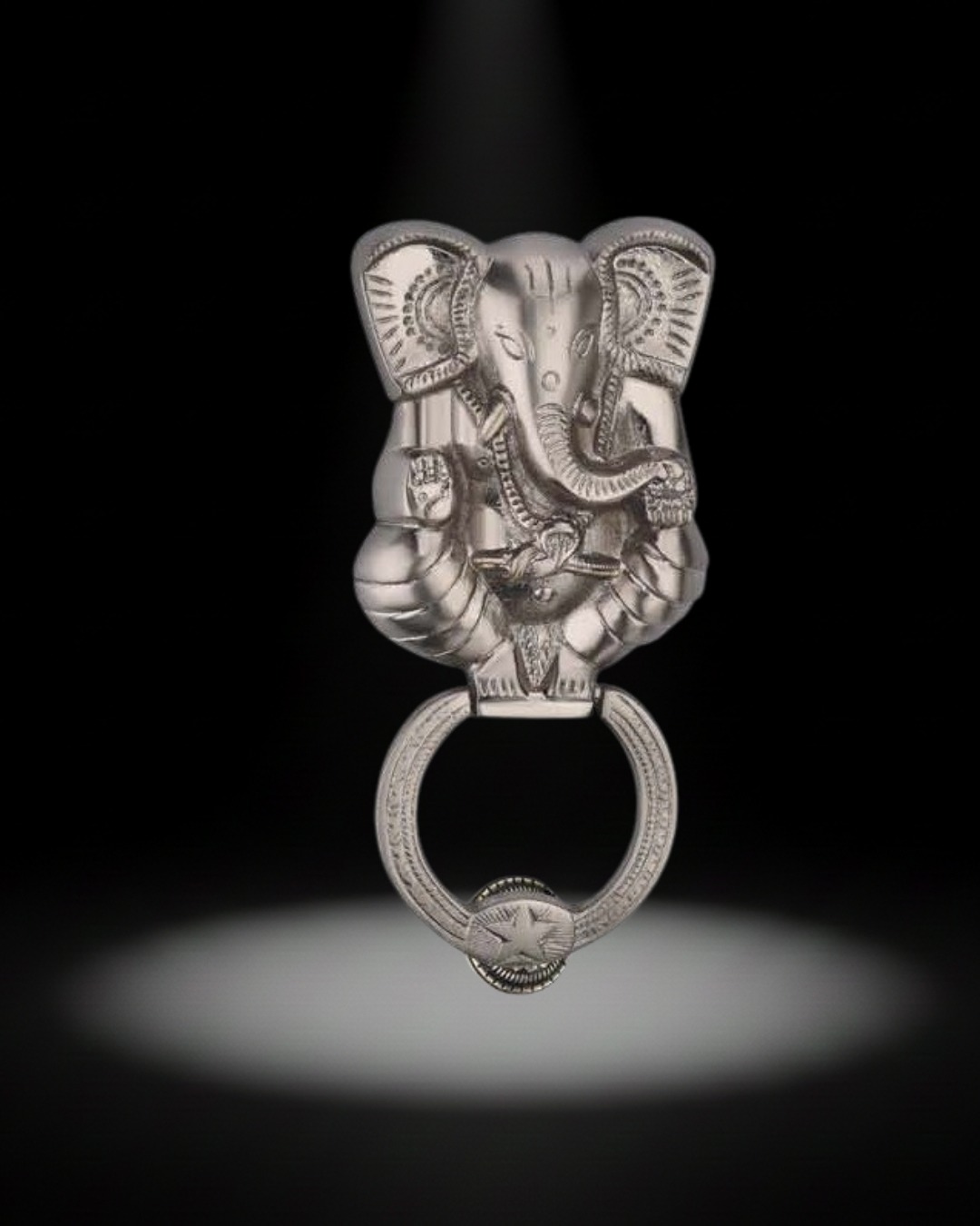 The Ganesh Brass Door Knocker features an intricately sculpted image of Lord Ganesh, representing peace, prosperity, and protection. Crafted from premium brass, it enhances entrances with both spiritual energy and decorative value. Perfect for traditional homes, apartment entrances, pooja room doors, and cultural properties. The strong knocking ring is well-balanced for smooth operation.